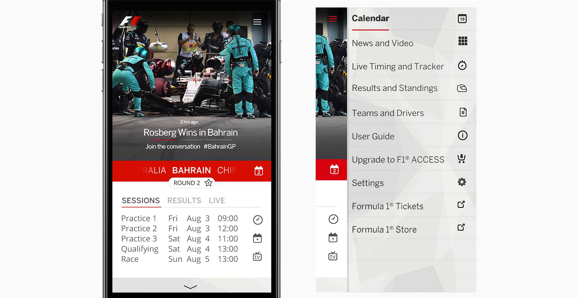 The Formula 1 Paddock ClubTM Application for IOS & Android
