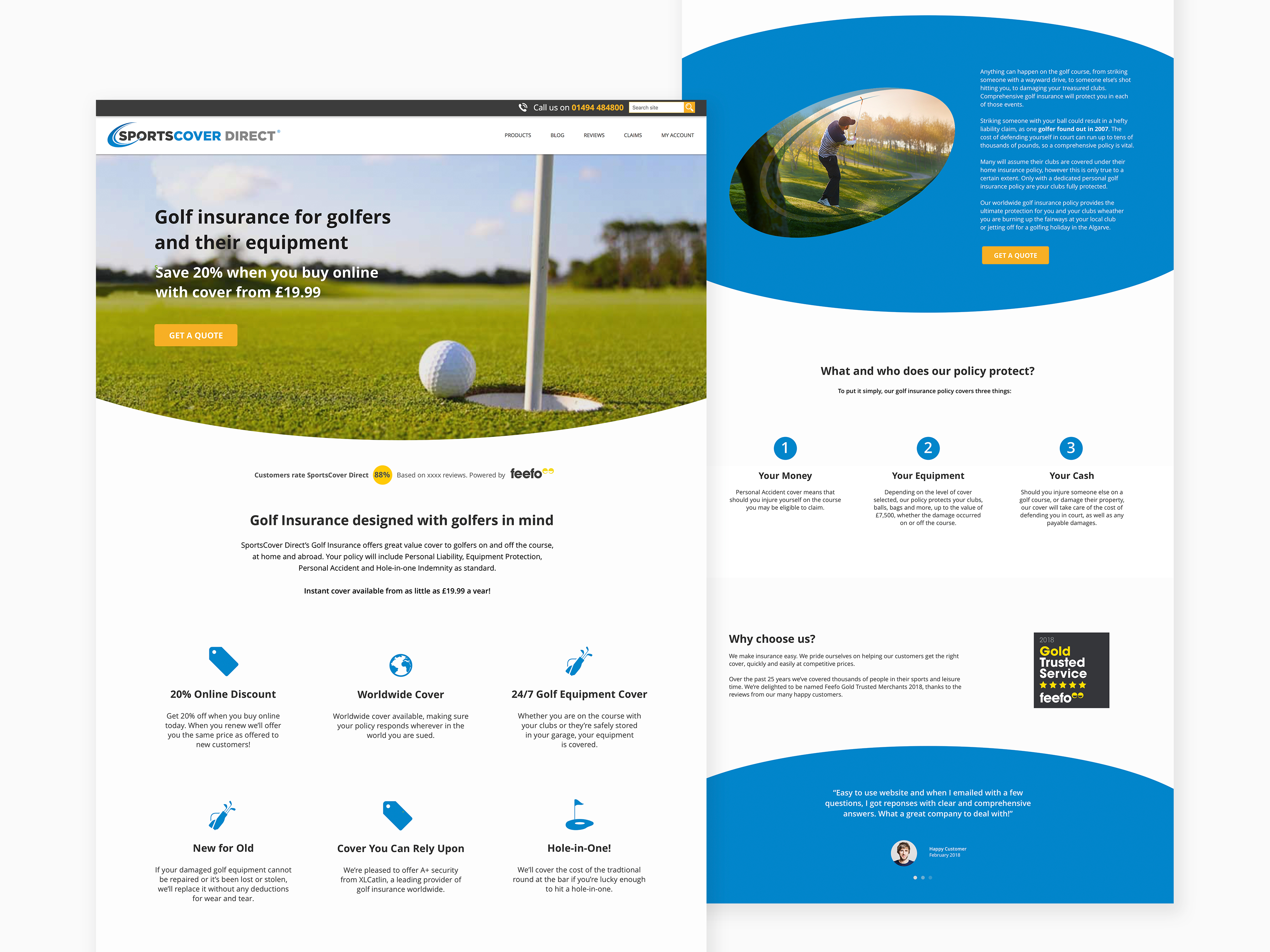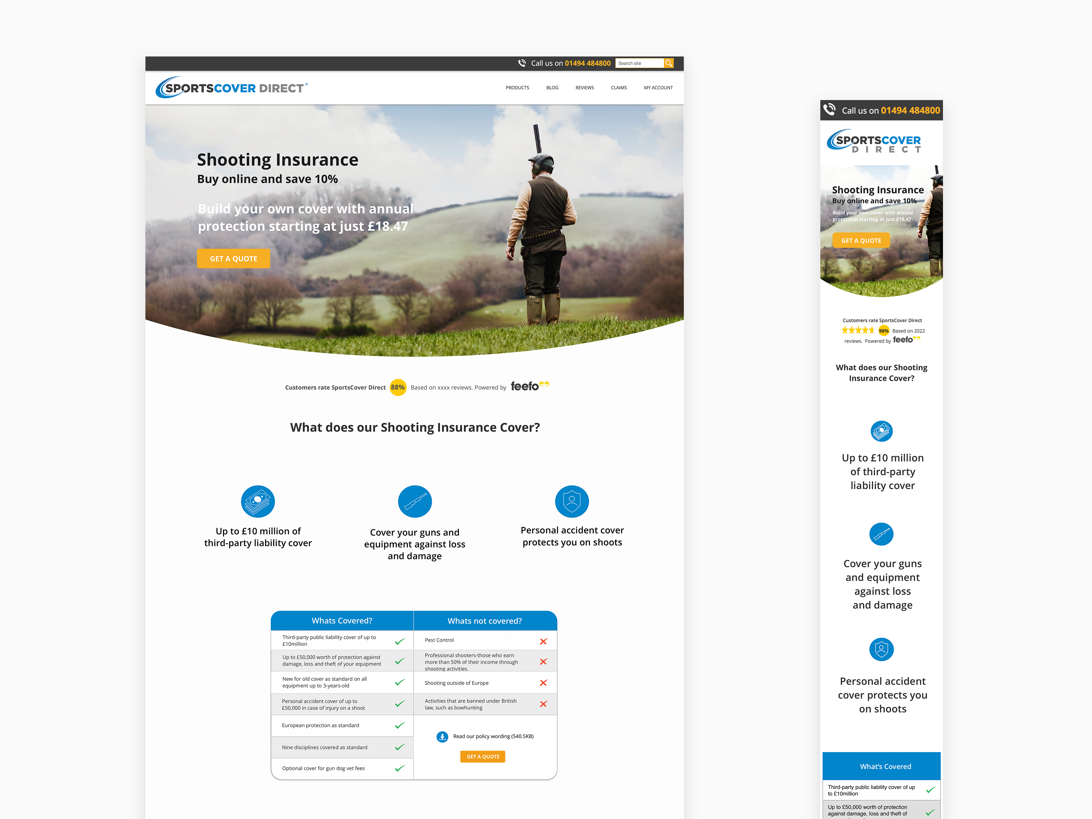 SportsCover Direct Shooting & Golf Insurance Landing Page